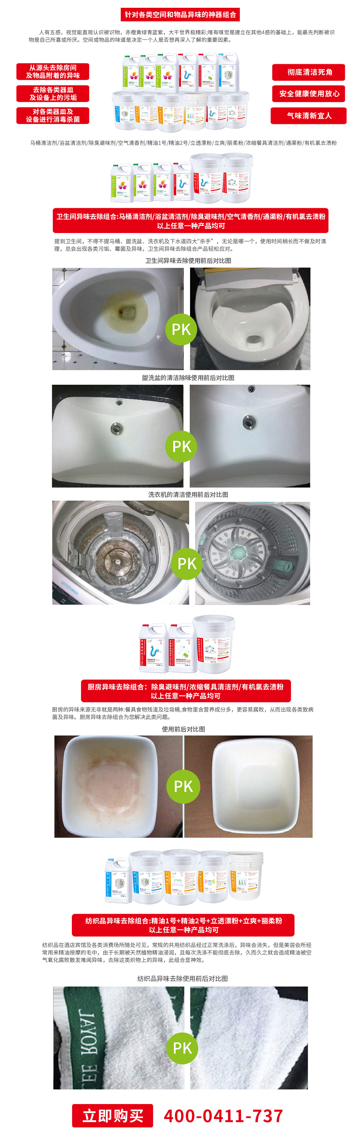 針對(duì)衛(wèi)生間、廚房、紡織品異味的去除。